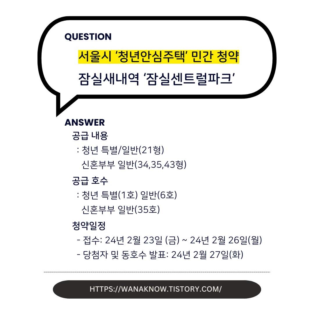 이번 청약에 대한 자세한 정보는 서울시 '청년안심주택' 사이트에서 확인 바란다.